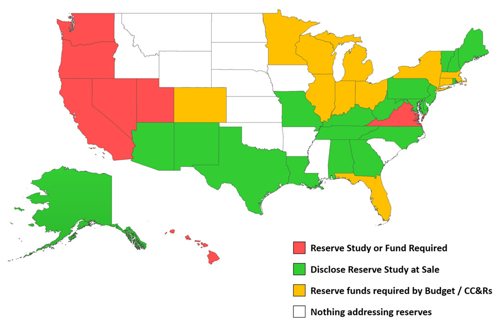 Within the USA, requirements for reserve studies vary by state.  Community associations are legally mandated in 30 states to have some form of reserve planning or disclosures.